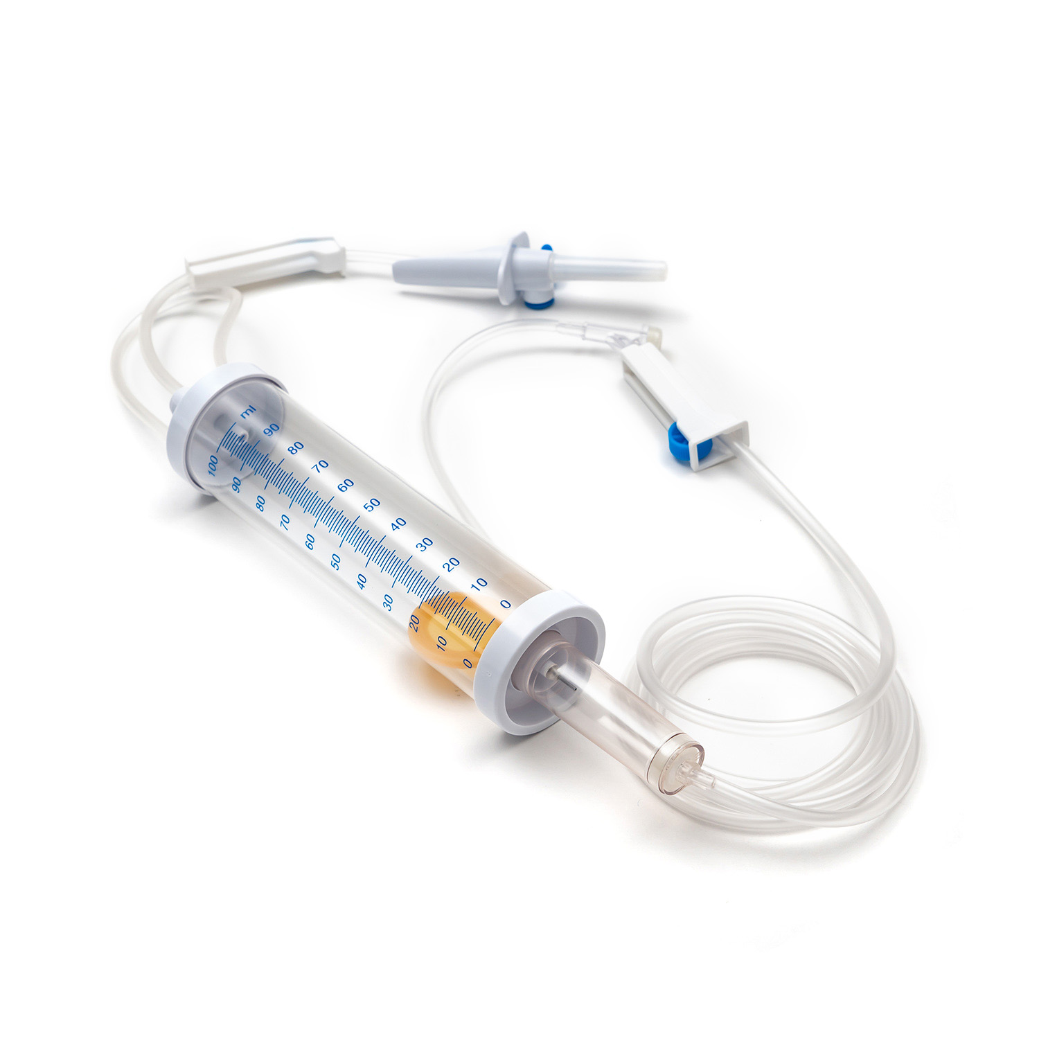 Ang set ng 100ml Burette ay isang aparatong medikal na pangunahing ginagamit para sa tumpak na pag -titrating ng dosis ng panggagamot na likido sa panahon ng proseso ng pagbubuhos. Karaniwan itong binubuo ng isang 100ml na kapasidad na transparent na baso o plastik na bote na nilagyan ng isang burette at aparato ng control ng titration.